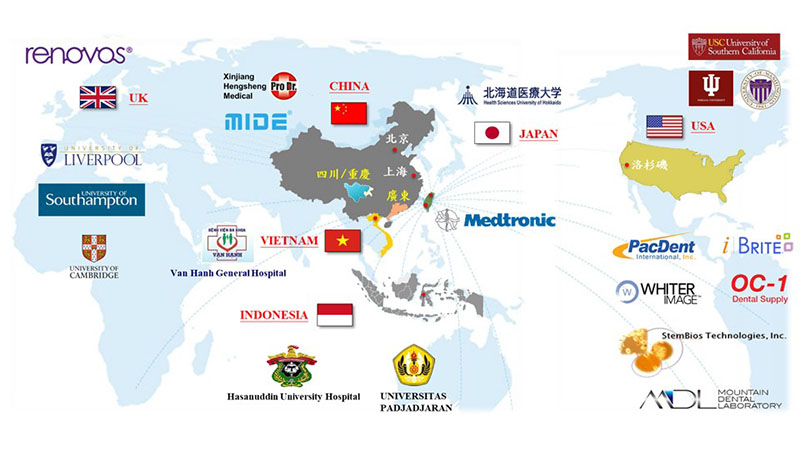 從2015年起三鼎生技即與多個國際知名的學術團體與學校簽訂MOU,三鼎生技的獨特3D 逆向重建技術與奈米生醫材料專長結合國外合作大學研究能量,進行實質國際跨領域學術合作,藉由雙方密集與積極的往來與交流,增進研發能量達到雙贏的效果,其主要合作項目包括共同開發生物支架、3D人工植入物、骨幹細胞再生合作計畫、進行3D列印植入醫材開發、進行顱顏顎面重建醫材開發…等。三鼎生技亦開發生物性骨粉結合Hydroxyapatite、Si及Collagen,分別利用於軟、硬組織之組織再生,與國外廠商合作進行 3D 生物列印與輔具重建研究,未來期望可在臨床治療上提供客製化之填補物,為全國病患帶來福祉。